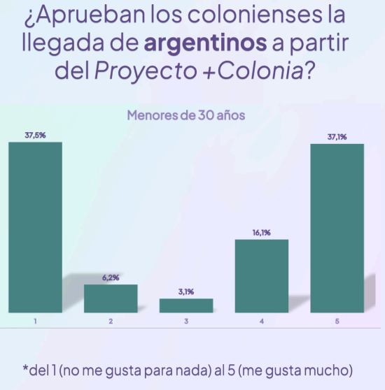 El análisis de la opinión entre los jóvenes (menores de 30 años) revela una fuerte polarización respecto a la llegada de argentinos a Colonia.